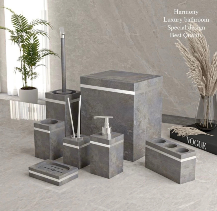 ست ۷ پارچه سرویس بهداشتی مدل رویا بتن طوسی تیره کروم