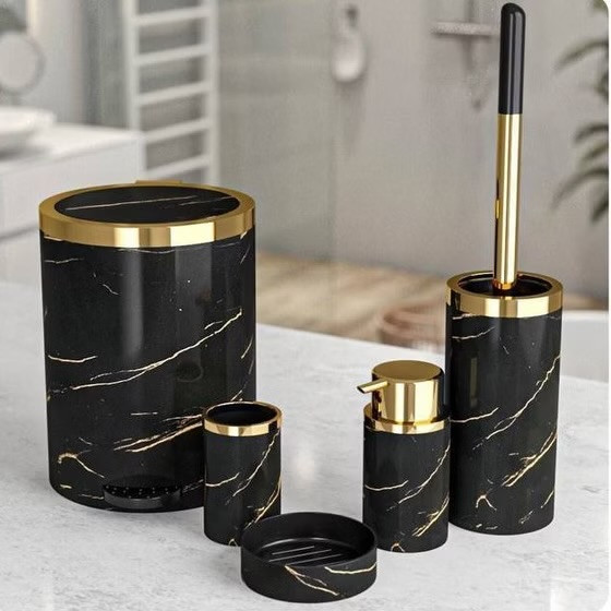 ست سرویس بهداشتی ۵ پارچه هارمونی طرح سنگ مشکی طلایی