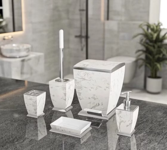 ست سرویس بهداشتی 5پارچه هارمونی مدل آوا طرح سنگ سفید کروم