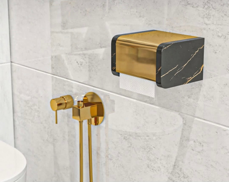 جا دستمالی کاور دار روشا طرح سنگ مشکی طلایی هارمونی