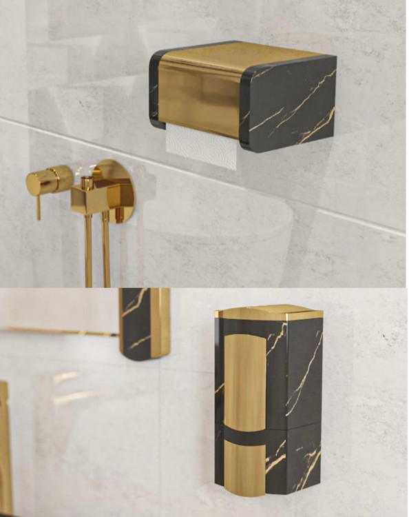 ویژگیهای جا دستمالی توالت هارمونی طرح سنگ مشکی طلایی