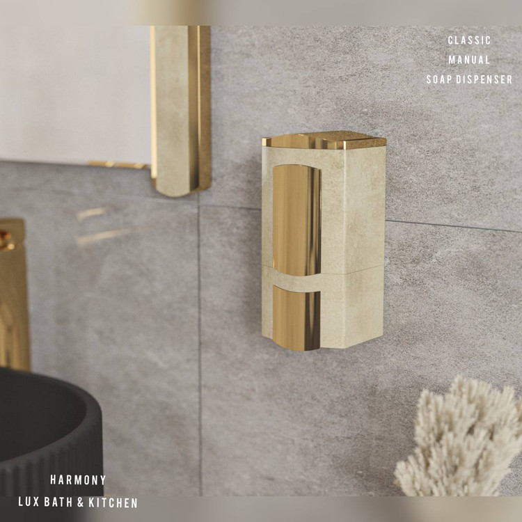 ست جا دستمالی و جا مایع هارمونی طرح بتنی کرم طلایی