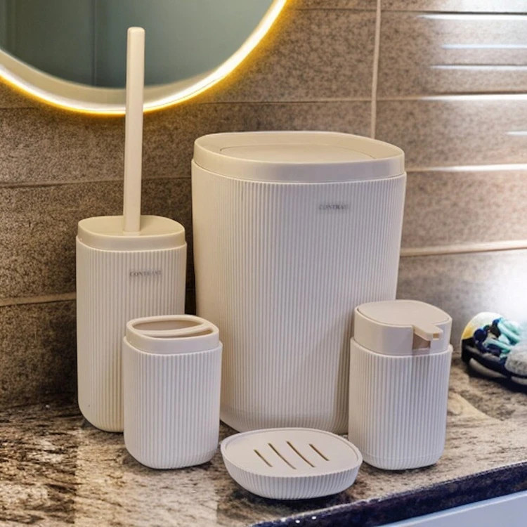 ست سرویس بهداشتی 5 پارچه طرح جدید روما خطی شیاردار برند کنتراست رنگ بسیار زیبا و شکیل و جذاب و پرطرفدار سفید مات کیفیت ساخت بسیار مناسب و قیمت خوب و مناسب