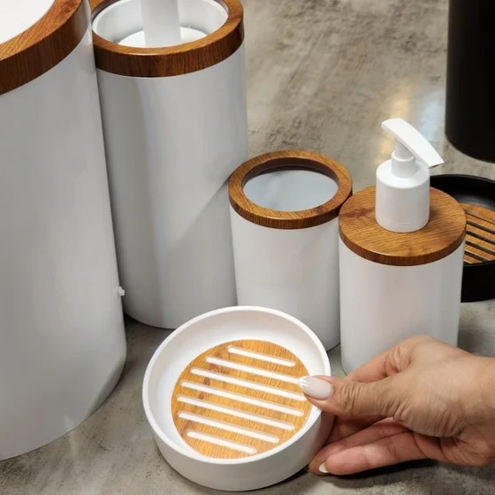 ست سرویس بهداشتی ۵ پارچه هارمونی طرح چوب سفید مات