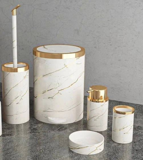 ست سرویس بهداشتی هارمونی مدل روشا طرح سنگ سفید طلایی