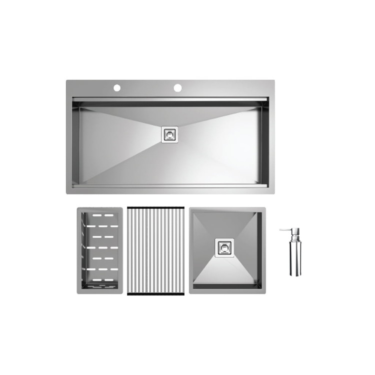 مدل توکار BCN 90 از نمونههای دستساز است که میتوانید آن را به سه سبک آندرمانت، تاپ مانت و فلش مانت نصب کنید. از ورق ضخیم 1.25 میلیمتری با جنس فولاد ضد زنگ 304 (Stainless steel 304) در ساخت آن استفاده شده است. بخش سینی در این سینک حذف شده و در عوض از لگنی بزرگ به طول 90، عرض 50 و عمق 25 سانتیمتر در آن استفاده میشود. این ابعاد قابل توجه کمک میکند که وقتی ظروف نشسته زیادی در آشپزخانه دارید، بتوانید همه را در لگن عمیق سینک جا دهید و از شلوغ شدن فضای آشپزخانه جلوگیری کنید.
