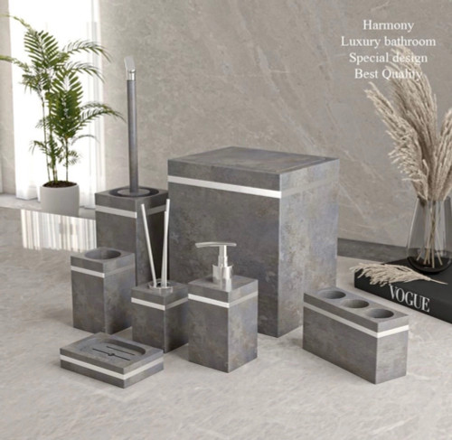 ست ۵ پارچه سرویس بهداشتی هارمونی طرح سنگ طوسی تیره کروم مدل آوا۱٬۹۷۰٬۰۰۰ تومان